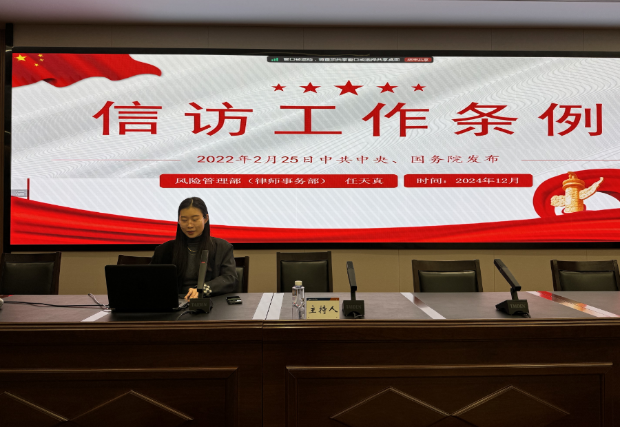 風(fēng)險(xiǎn)管理部(律師事務(wù)部)任天真同志,對(duì)《條例》出臺(tái)背景、意義、特點(diǎn)、主要內(nèi)容等進(jìn)行了深入介紹,并通過(guò)正、反案例展開生動(dòng)剖析,提升了集團(tuán)全員對(duì)信訪工作的認(rèn)識(shí)和理解。