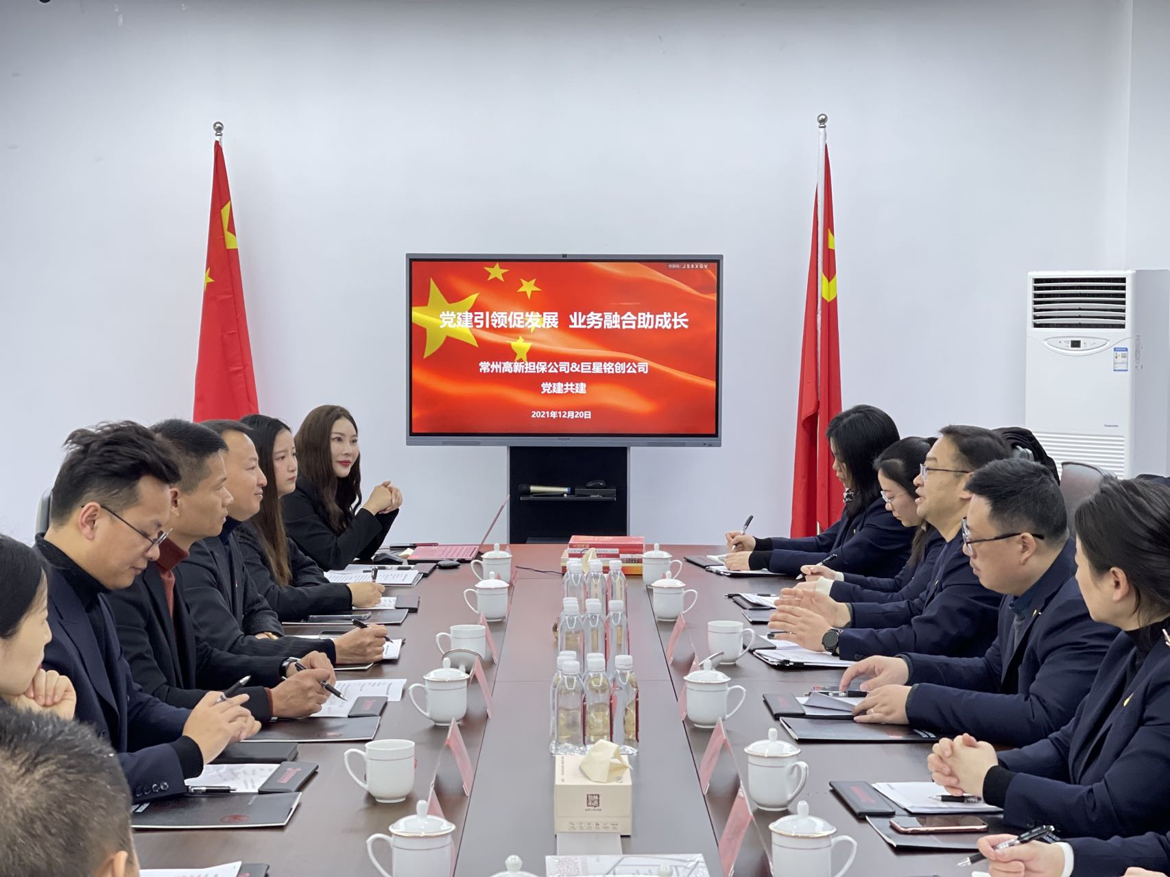 12月20日,常州高新擔保公司組織常州分公司、武進擔保公司有關人員,深入常州巨星銘創公司走訪調研,開展黨建共建活動。