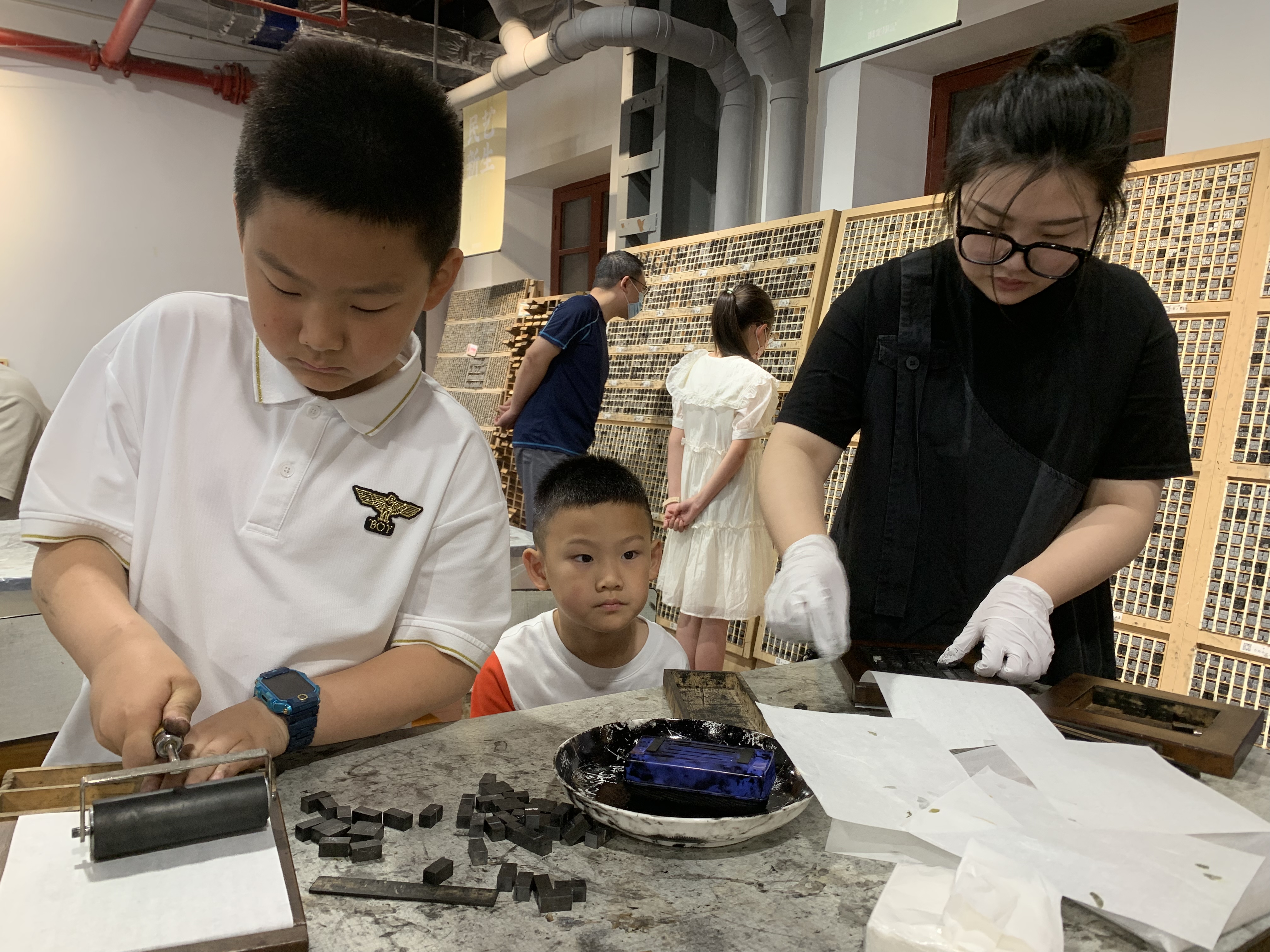 “活字印刷術的發明是印刷史上一次偉大的技術革命,下面就讓我們穿越時光隧道,感受活字印刷術的魅力吧。” 活動當天,活字印刷館工作人員為孩子們仔細講解了活字印刷術的起源、發展歷程以及印刷的工具與注意事項,引導大家了解活字印刷術的相關知識。在工作人員的指導下,開始了活字印刷的體驗之旅。從掃碼選字、涂抹墨汁上墨、鋪上宣紙、按壓均勻,再到用滾輪逐字滾動按壓,待紙張泛出均勻墨跡,揭開宣紙,最后一張張靈動而又清晰的活字印刷品展現在了大家面前。