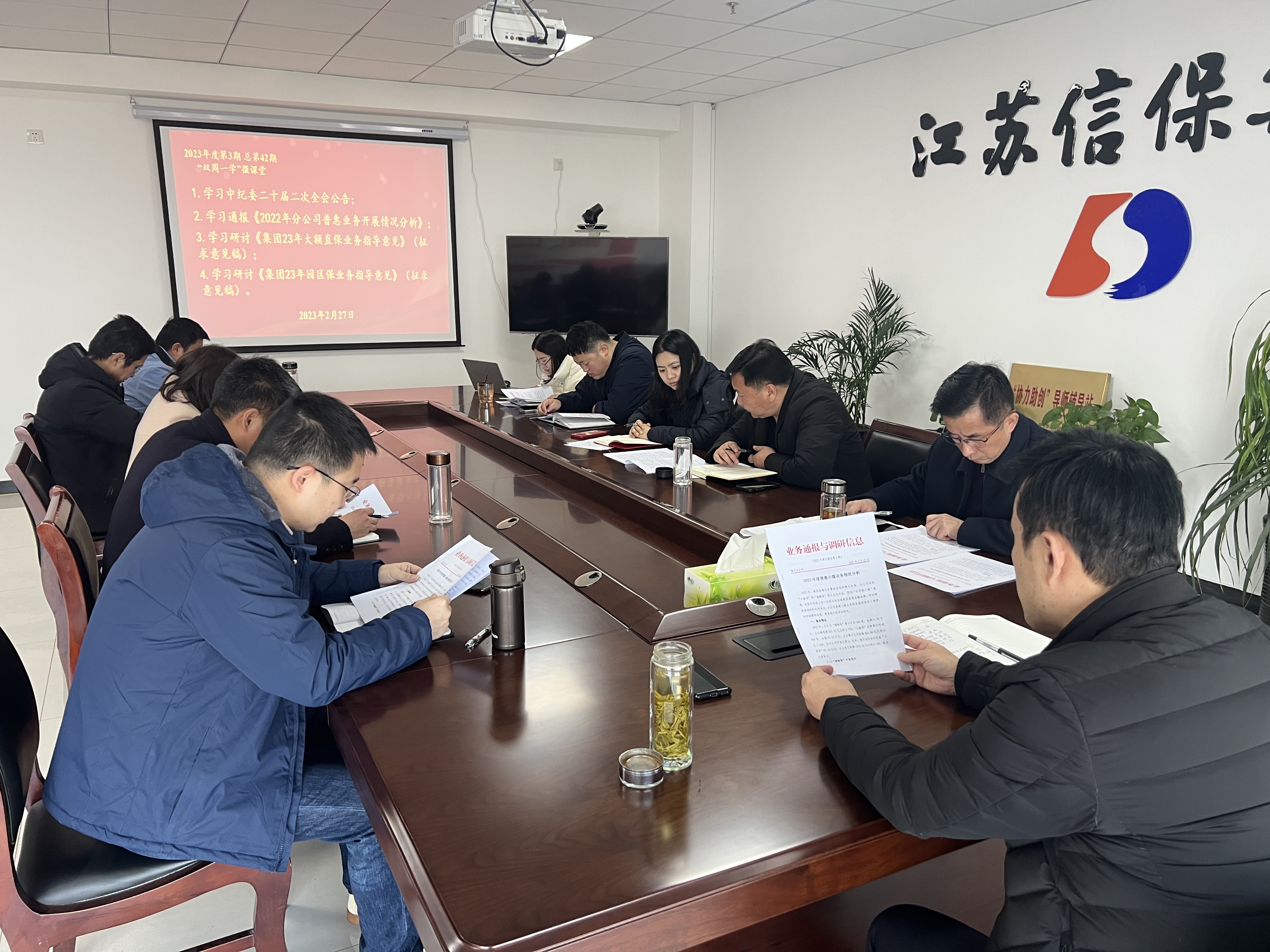 為進一步學習貫徹落實二十大精神,加強自身建設,扎實業(yè)務發(fā)展根基,2月27日上午,宿遷分公司開展2023年第三期“雙周一學”微課堂活動。全體員工(含再保融資租賃宿遷辦事處和擔保協(xié)會秘書處人員)參加。