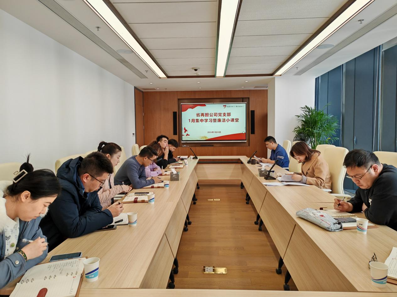 1月26日上午,省再擔公司黨支部開展1月集中學習暨廉潔小課堂活動,公司黨支部全體黨員參加學習研討。