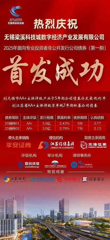4月15日,由集團(tuán)提供增信的“無錫梁溪科技城數(shù)字經(jīng)濟(jì)產(chǎn)業(yè)發(fā)展有限公司2025年非公開發(fā)行公司債券”在深圳證券交易所成功發(fā)行。本期6億元債券的發(fā)行,標(biāo)志著無錫梁溪科技城在深化產(chǎn)融結(jié)合、推動數(shù)字經(jīng)濟(jì)高質(zhì)量發(fā)展上取得新突破,也為地方國企創(chuàng)新融資模式提供了示范樣板。