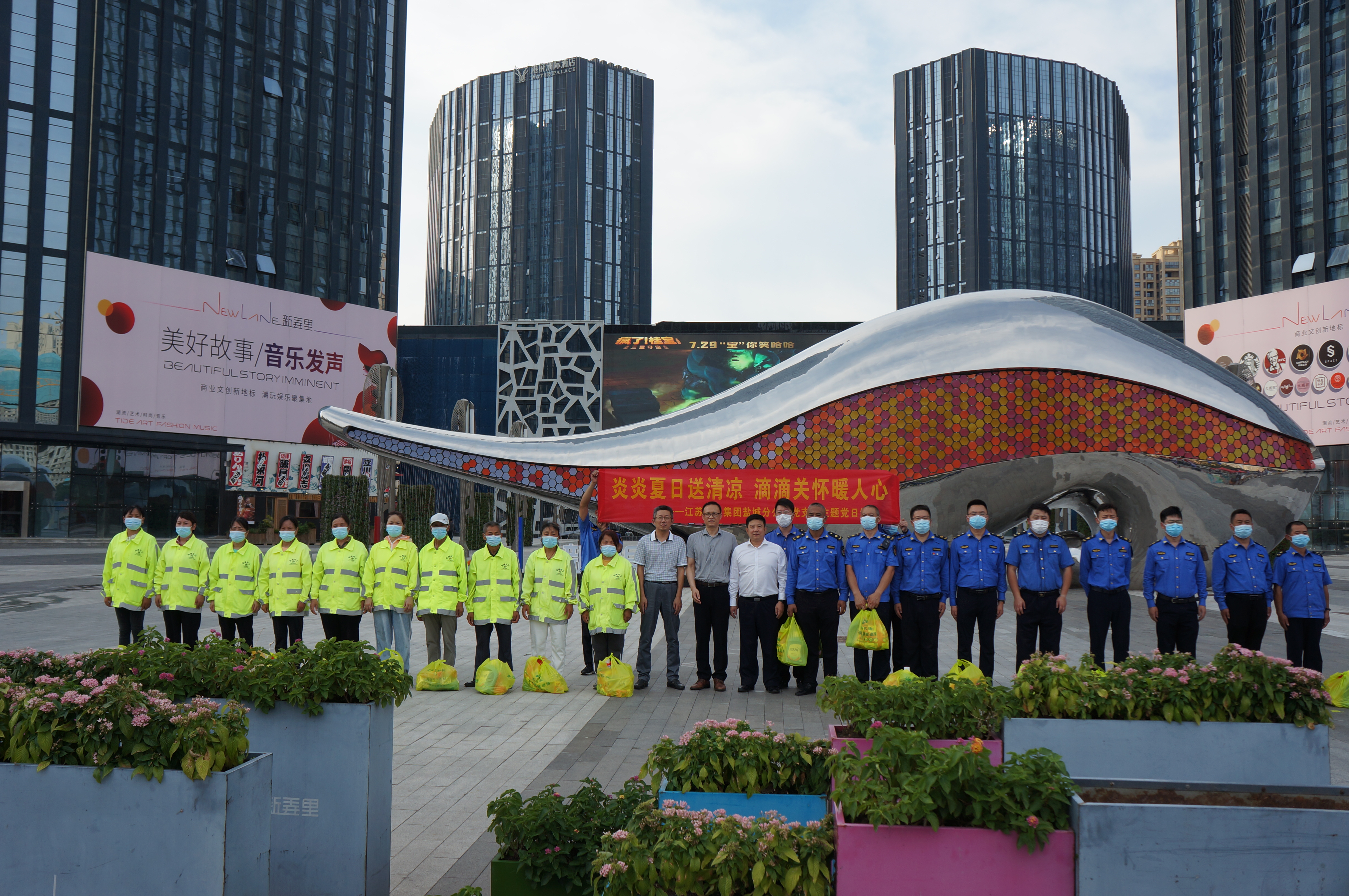 8月9日,鹽城分公司黨支部在當(dāng)?shù)匦屡镂幕瘡V場(chǎng)舉行“喜迎二十大 強(qiáng)國(guó)復(fù)興有我”志愿服務(wù)活動(dòng)之“炎炎夏日送清涼 滴滴關(guān)懷暖人心”主題黨日活動(dòng), 給堅(jiān)守在一線的城管工作人員和環(huán)衛(wèi)工人送去清涼物資。本次活動(dòng)充分發(fā)揮了“紅色鹽阜信保鐵軍”黨支部的社會(huì)責(zé)任與國(guó)企擔(dān)當(dāng),得到鹽城市鹽南高新區(qū)城管局的肯定與感謝。(鹽城分公司張麗君)