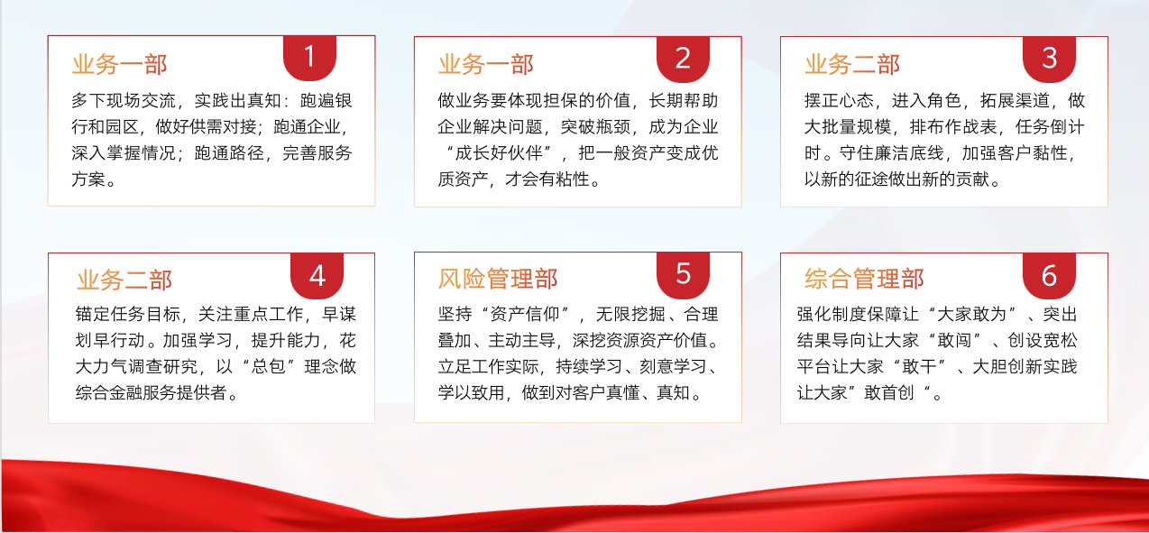 各討論組現(xiàn)場氣氛熱烈,大家紛紛表示集團(tuán)領(lǐng)導(dǎo)的講話和報(bào)告指明了“怎么干”的方向和路徑,思路清晰、重點(diǎn)突出、目標(biāo)明確,對做好2023年度工作具有很強(qiáng)的針對性和可操作性。對董事長講話中提出的抓住資產(chǎn)端、在“總包”基礎(chǔ)上做整體解決方案、能力提升三個(gè)方面明確要求,各部門、各條線暢所欲言,講思路、談打算、列舉措。