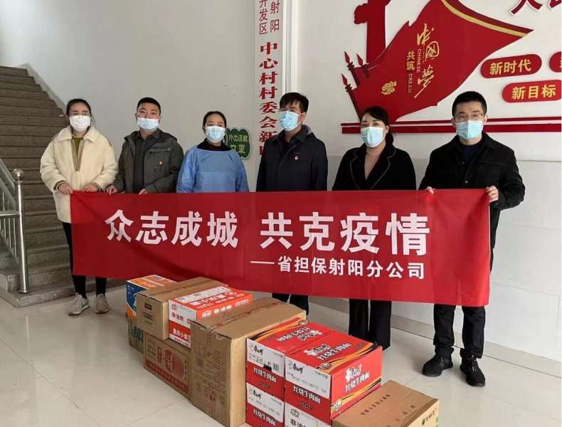 11月20日,省擔(dān)保射陽(yáng)分公司全體員工自發(fā)放棄假日休息,向所在地、開(kāi)發(fā)區(qū)中心村提供慰問(wèn)物資,為抗疫人員獻(xiàn)上一份愛(ài)心。