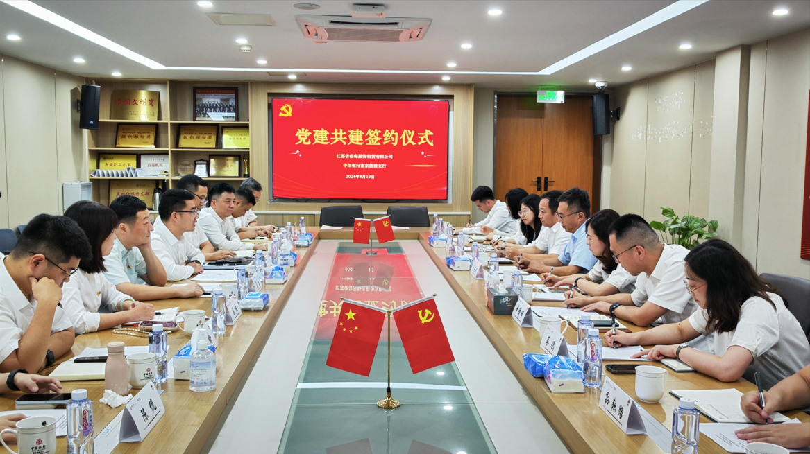 為深化銀租合作,構建“組織共建、資源共享、發展共贏”的黨建工作新格局,8月19日,江蘇信保租賃公司與中國銀行鼓樓支行開展黨建共建活動并簽署黨建共建暨廉潔伙伴協議。信保租賃公司負責人,中國銀行鼓樓支行行長張志標,中國銀行南京分行普惠金融事業部副總經理仲衛衛出席活動。